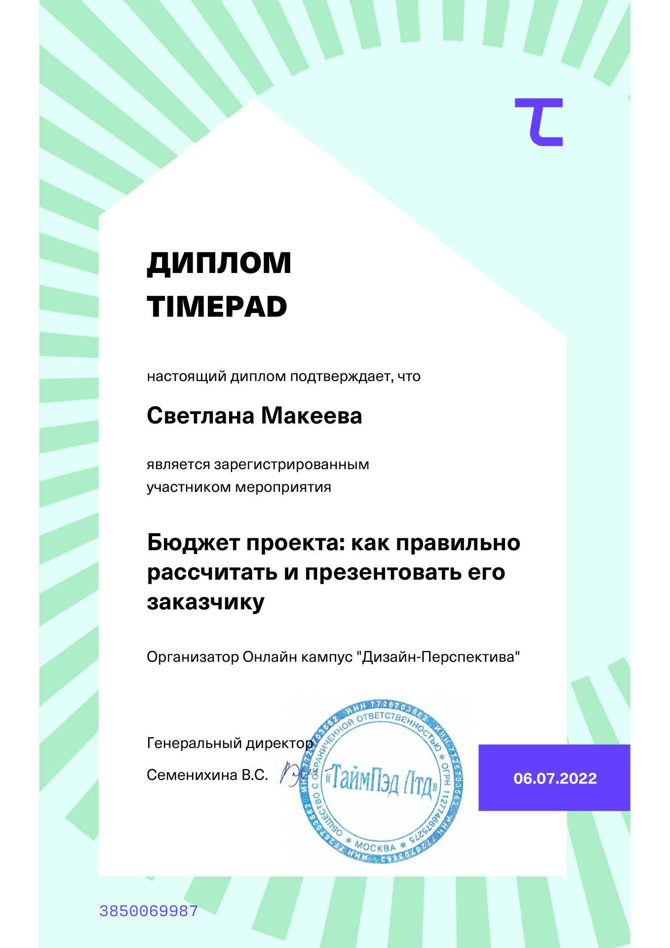 Вы сами оцениваете ценность Вашего времени и комфорта до начала сотрудничества. Я работаю на результат и чувствую важность завершения процесса в физическом воплощении проекта.